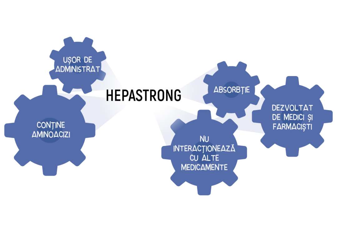 Hepastrong este un complex de aminoacizi care susține funcțiile sănătoase ale ficatului și protejează ficatul de leziunile cauzate de toxine, alcool, medicamente. Ajută pacienții să evite complicațiile hepatice.