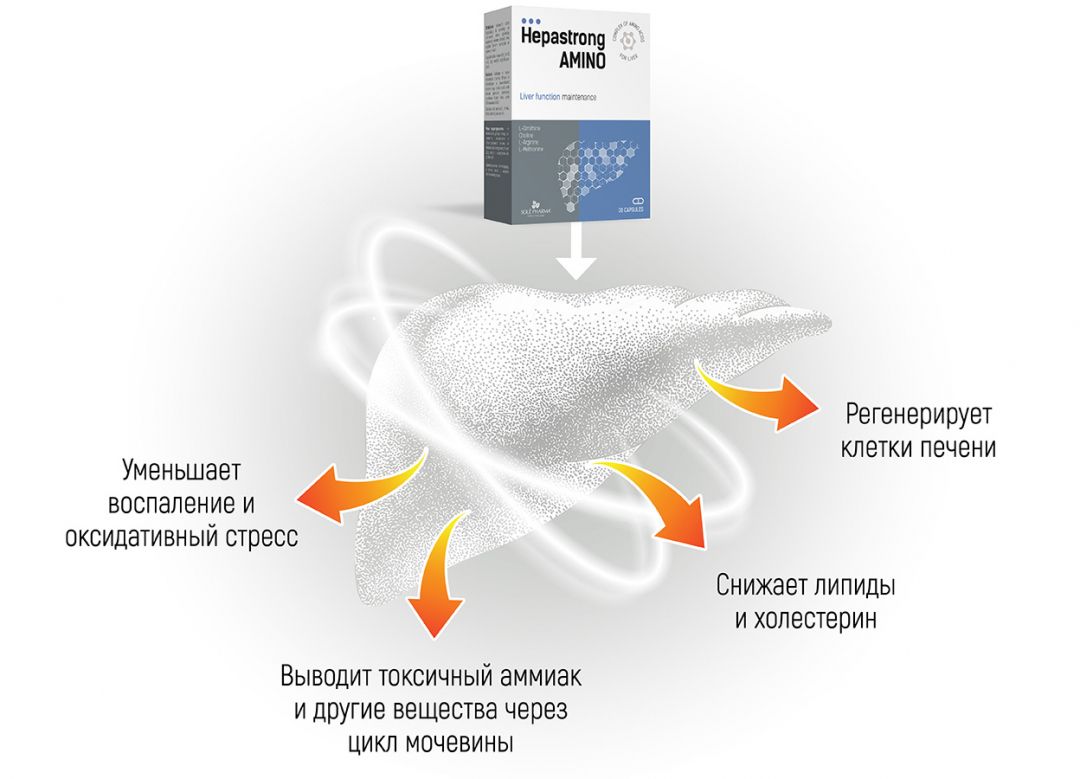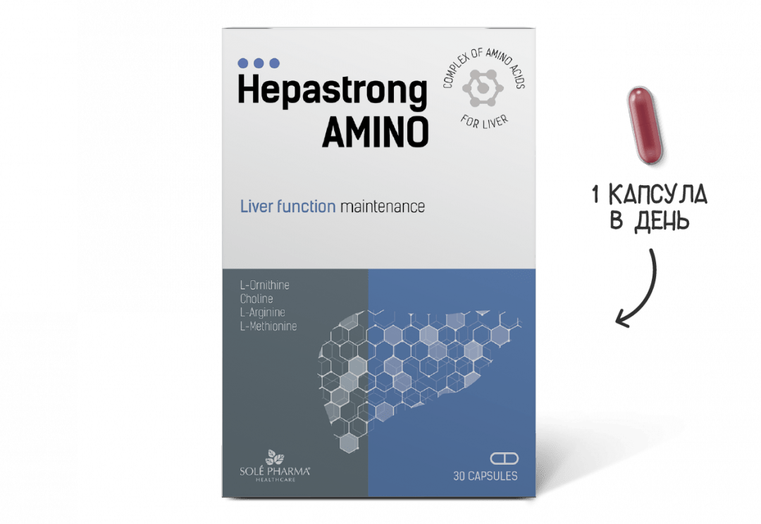 Hepastrong AMINO в форме капсул имеет клинически доказанную эффективность в области гепатопротекции – препятствует накоплению жира, обеспечивает выведение токсических веществ, регенерирует клеточную мембрану и уменьшает воспаление.